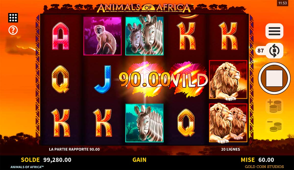 Animals of Africa est une collaboration entre Microgaming et Gold Coin Studios, distribuée via le réseau Games Global.